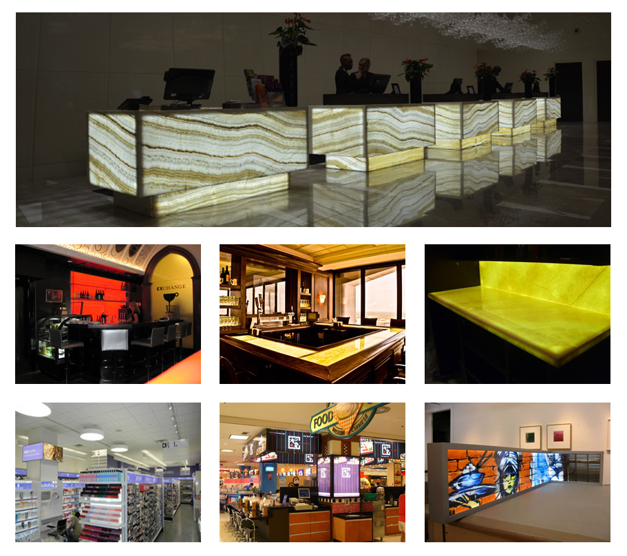 Denver LED Direct’s custom LED light board provides marvelous uniform light distribution all over the surface due to our unique individual light guide pattern. Our pattern differs from size to size which has been requested by our clients. Because of LED light board's gorgeous light display, it can be displayed anywhere where imagination can be applied! Under cabinet lights, ceiling light, airport tunnels, floor lights, exhibition lighting, retrofit for fluorescent, interior lighting, and more! LED Light Board is commonly utilized as lighting for many commercial applications such as hotels, airports, office lobby, hotel reception desks and more.